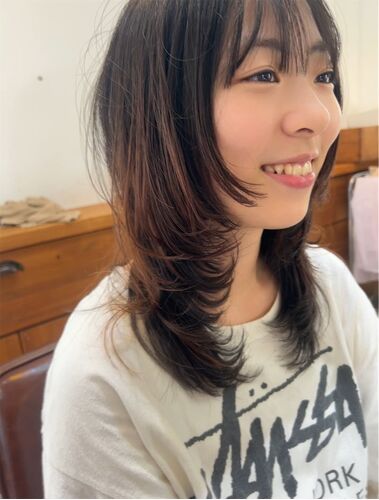 こんばんは ブログをご覧いただきありがとうございます ティーンズのイメチェンにぴったりなデザインカットをご紹介✨ 顔まわりにたっぷりレイヤーを入れたミディアムレイヤースタイル♪ 「髪を伸ばし中だけど、ちょっと飽きてきた…」そんなマンネリも解消でき…